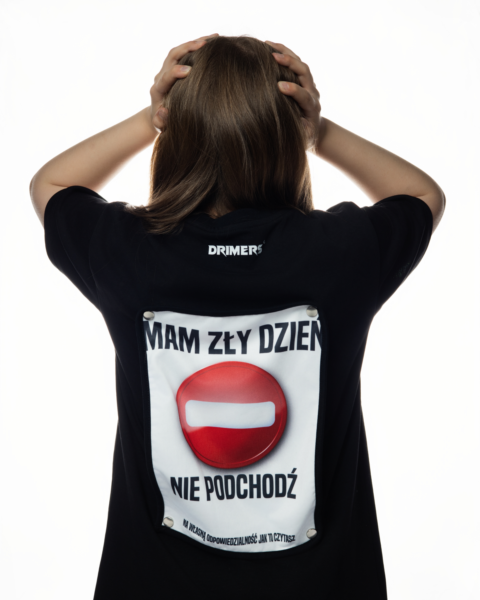 Standard – zjadasz szybki posiłek i oczywiście, jak zwykle, coś wylądowało na koszulce. Z DRIMERS to nie problem. Wystarczy, że zmienisz grafikę – na przykład na emoji z napisem „Znowu mam dobry dzień” – i po sprawie.